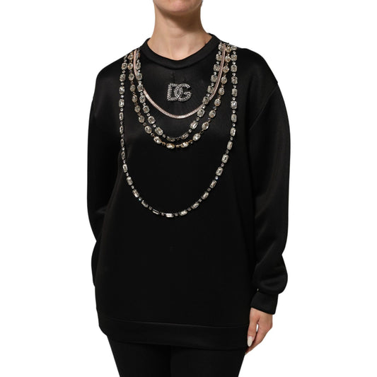 Dolce & Gabbana Black Crystal DG Necklace Sweatshirt Sweater