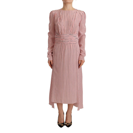 Ermanno Scervino Pink Stripes Long Sleeves Sheath Midi Dress