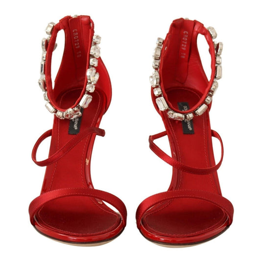 Dolce & Gabbana Red Satin Crystals Sandals Keira Heels Shoes