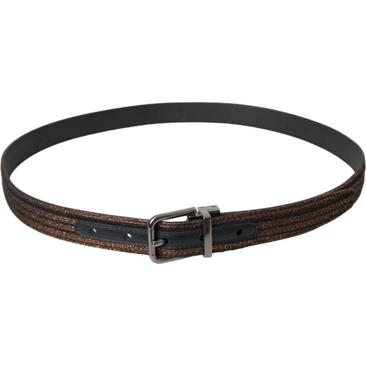 حزام دولتشي آند غابانا الذهبي المخطط بمشبك معدني فضي