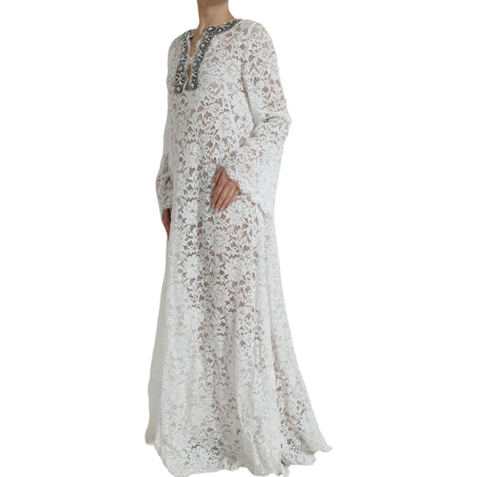 فستان أبيض أنيق من دولتشي آند غابانا مزين بالكريستال