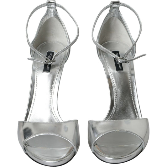 حذاء صندل KEIRA جلدي فضي اللون بكعب من Dolce & Gabbana