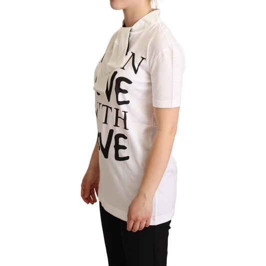 تي شيرت Dolce & Gabbana Chic White Love Motif من مزيج الحرير