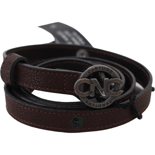 حزام جلدي بني أنيق من مجموعة Costume National مع أجزاء معدنية ريفية