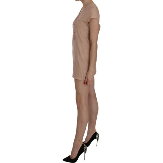 فستان قصير أنيق من الدانتيل باللون البيج من PINK MEMORIES