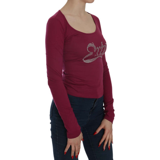 بلوزة إكستي فوشيا مزينة بالكريستال بفتحة رقبة على شكل حرف U