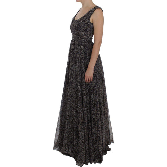 فستان دولتشي آند غابانا الأنيق المصنوع من الحرير المزهر بطول كامل