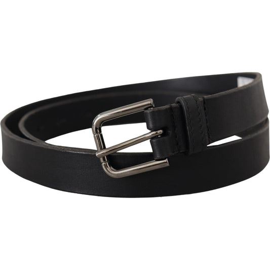 Dolce & Gabbana Belt Black Calf Leather Silver Tone Metal Buckle