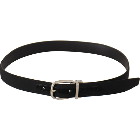 Dolce & Gabbana Black Canvas Leather Silver Metal Buckle Belt