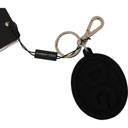 Dolce & Gabbana Black Rubber DG Logo Silver Brass Metal Keychain