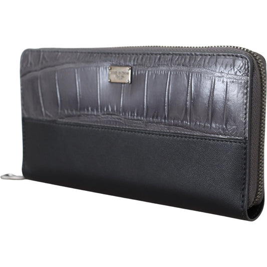 Dolce & Gabbana Black Zip Around Continental Clutch Leather Wallet