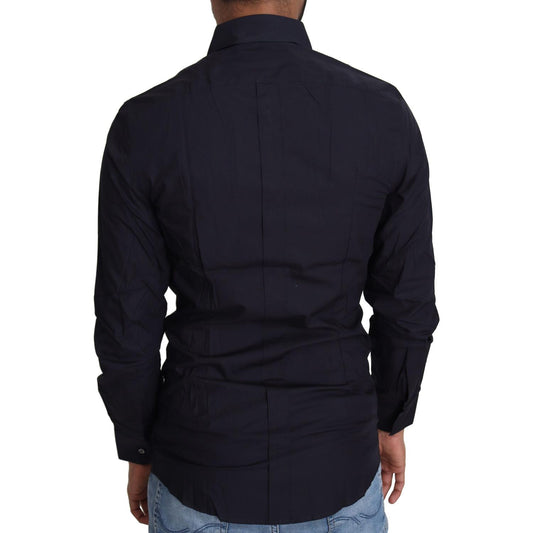 Dolce & Gabbana Navy Blue Cotton Formal Dress Shirt