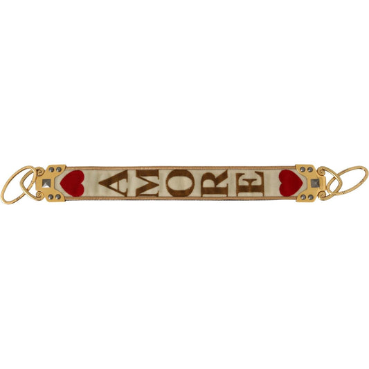 Dolce & Gabbana Gold White Textile Leather AMORE Shoulder Strap